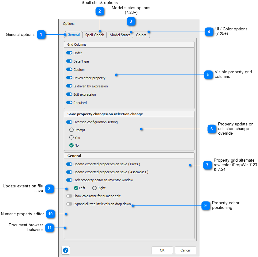 The Property Editor Options dialog contains tabs for general, spell check, and model states options.