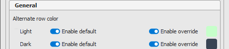 Click the color swatch to override the alternate grid row color for the property grid in the iPropWiz Property Editor. See the Configuration Editor - Options - Global page for more information on setting alternate row color.